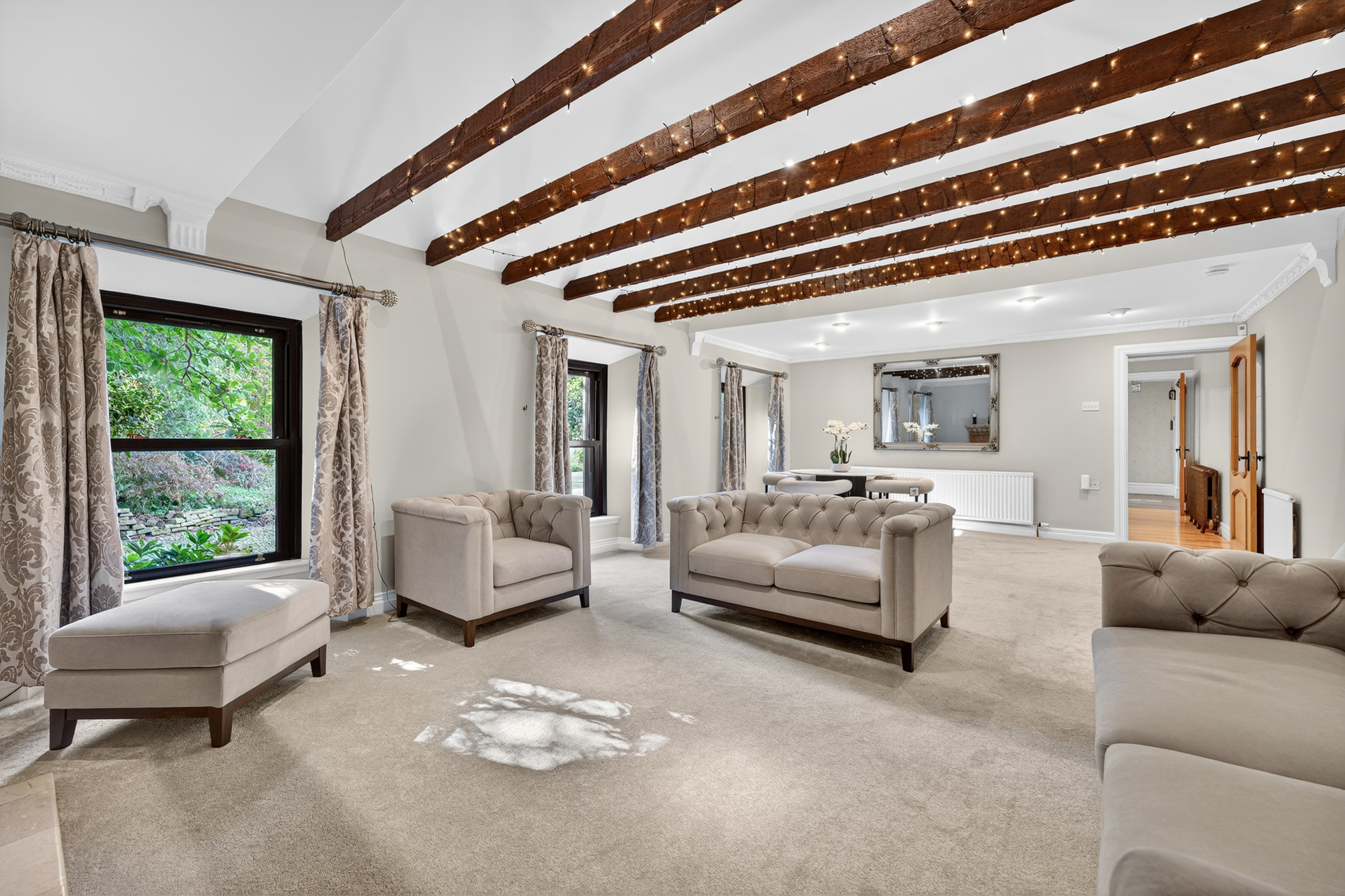 Positioned right alongside the Annick Water, the home boasts a raised decked terrace offering panoramic riverside views, which is perfect for relaxing or entertaining. Additional outdoor features include a fitted terrace kitchen, a workshop, a garden shed, and a large, partially converted double garage with an upstairs games room, offering scope for guest accommodation or studio use. Internally, the home offers a flexible and luxurious layout, with high-quality finishes throughout. Highlights include a magnificent master suite with a private balcony, a 25ft formal lounge, a custom Callerton kitchen, and generous living spaces that suit both family living and entertaining.