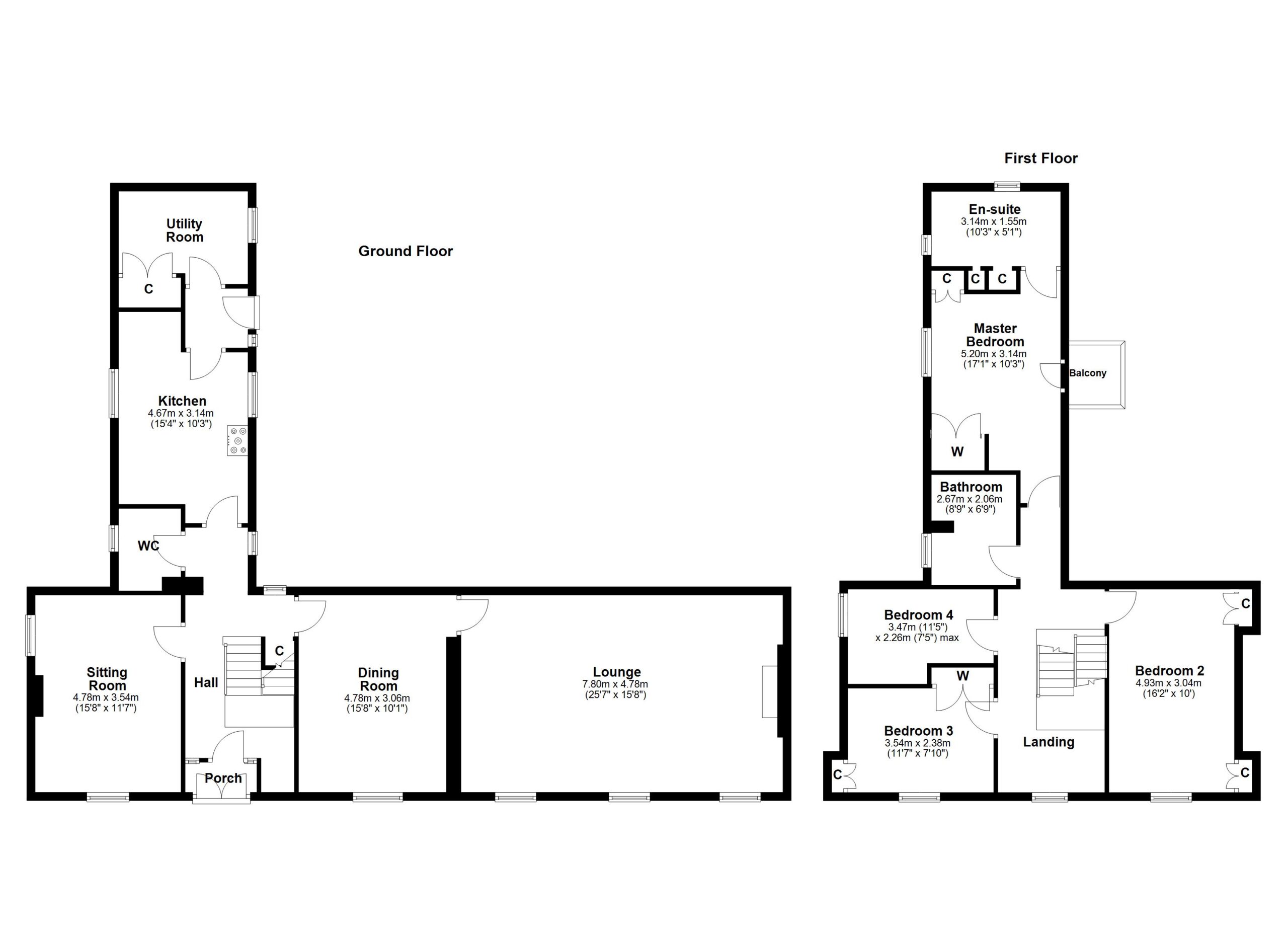 In more detail, the internal accommodation extends to an entrance porch, a hallway with a grand staircase leading to the upper floor and under stairs storage, a sitting room with double aspect windows and a wood burning stove, formal dining room that leads through into a large formal lounge, with a feature fireplace and three front facing windows, a downstairs WC, a Callerton kitchen with a gas range and integrated appliances, and a separate utility room. On the upper floor there is generous landing with a seating area, a fantastic master bedroom with a balcony, an en suite shower room suite and fitted wardrobes, a family bathroom and a further three bedrooms.