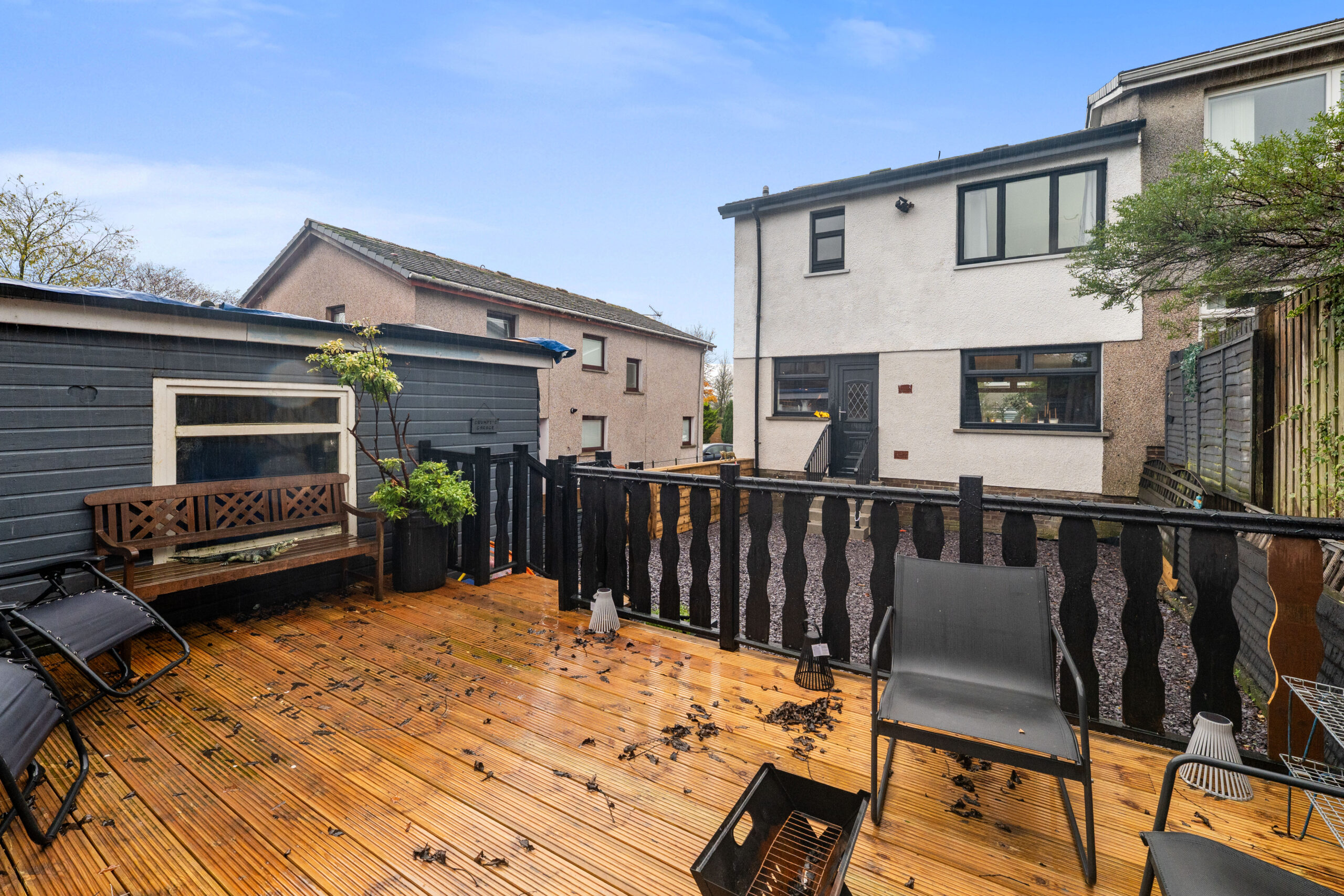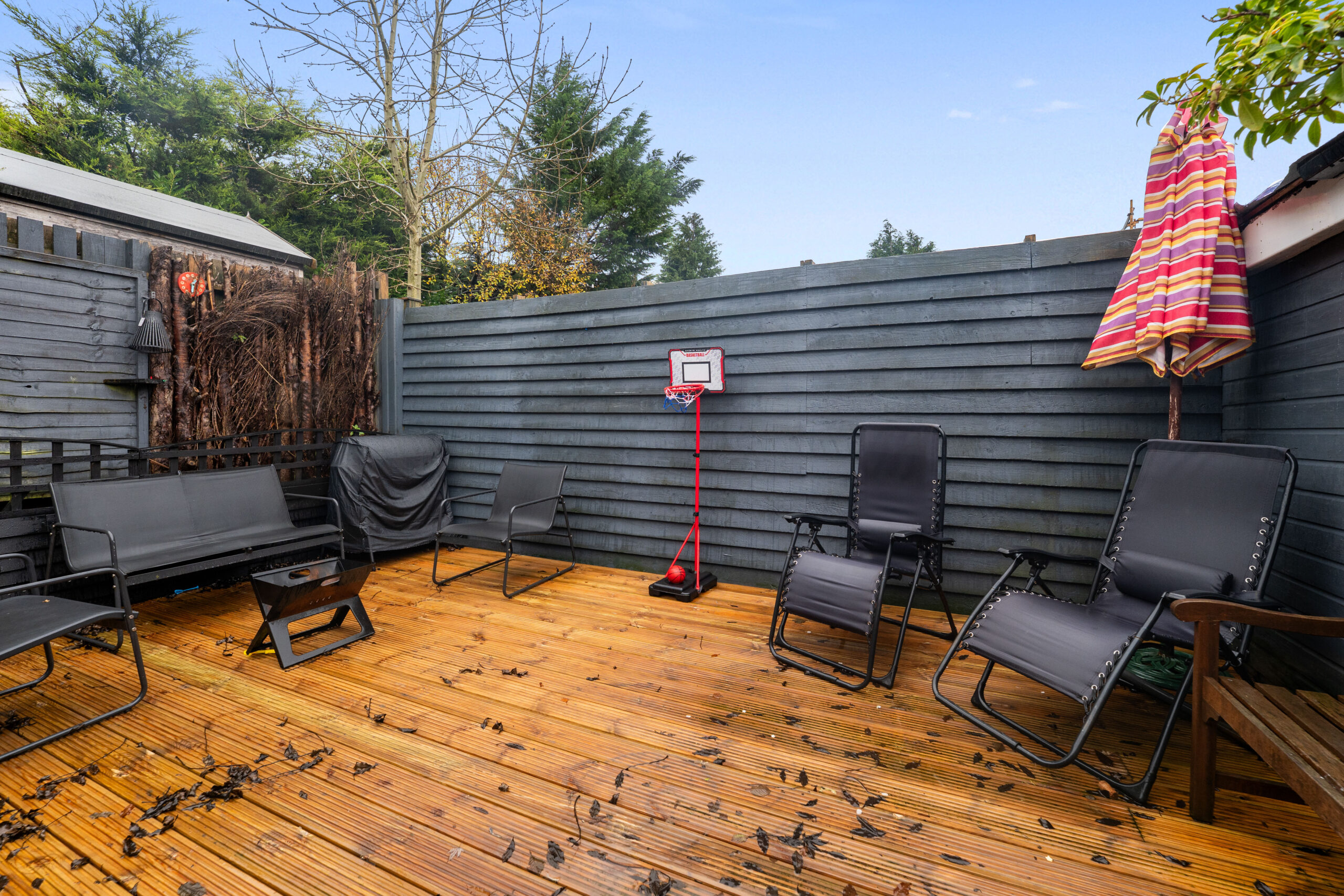 Externally, the property enjoys a private rear garden, featuring an enclosed chipped area and decked seating area, for outdoor enjoyment.