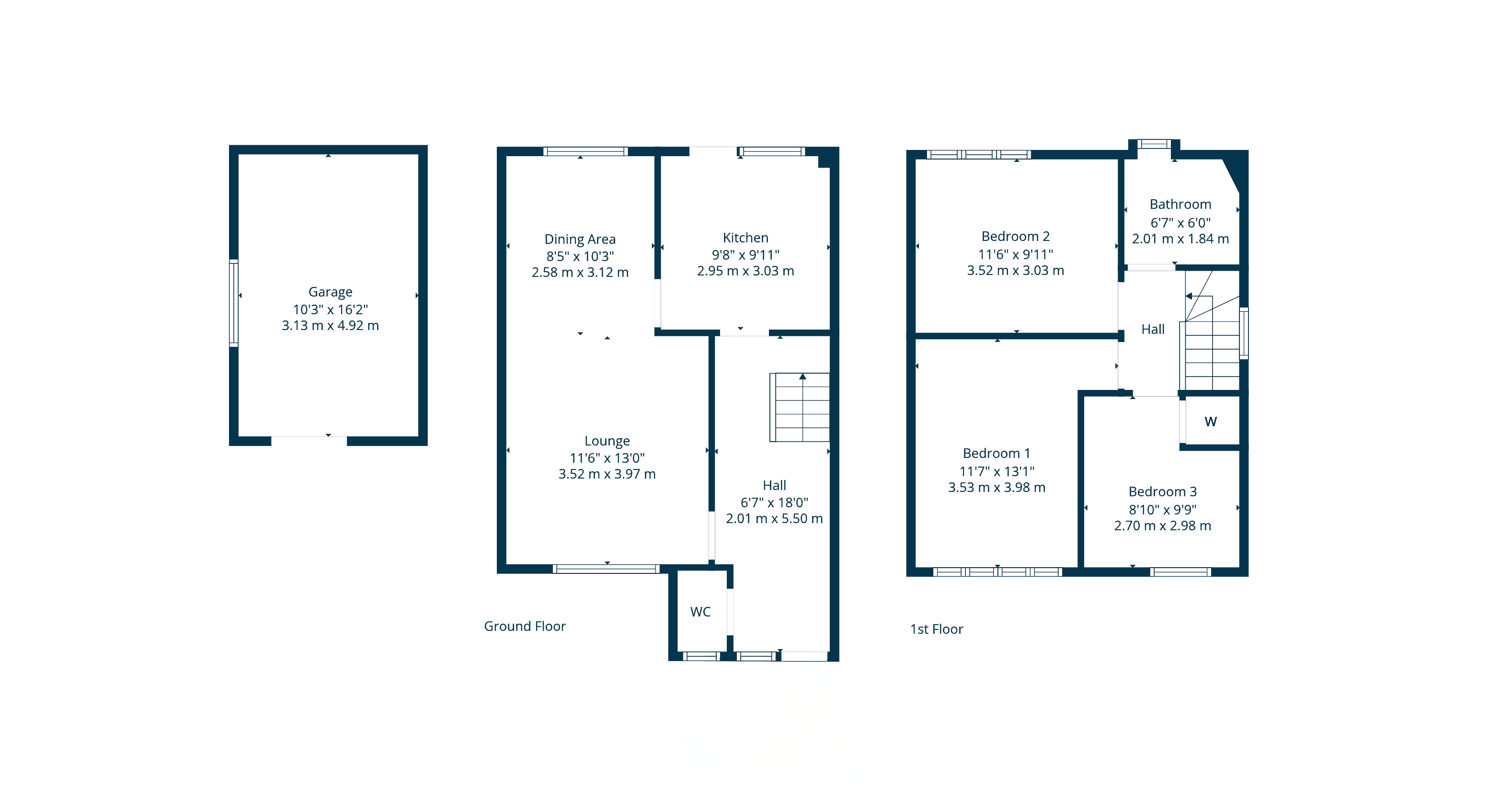 Upstairs, the first-floor landing is naturally bright, thanks to a gable window, and provides access to three well-proportioned bedrooms - two generous doubles and a further single bedroom, ideal as a child’s room or study. The accommodation is completed by a stylish family bathroom, fitted with a modern three-piece suite and shower over the corner bath.