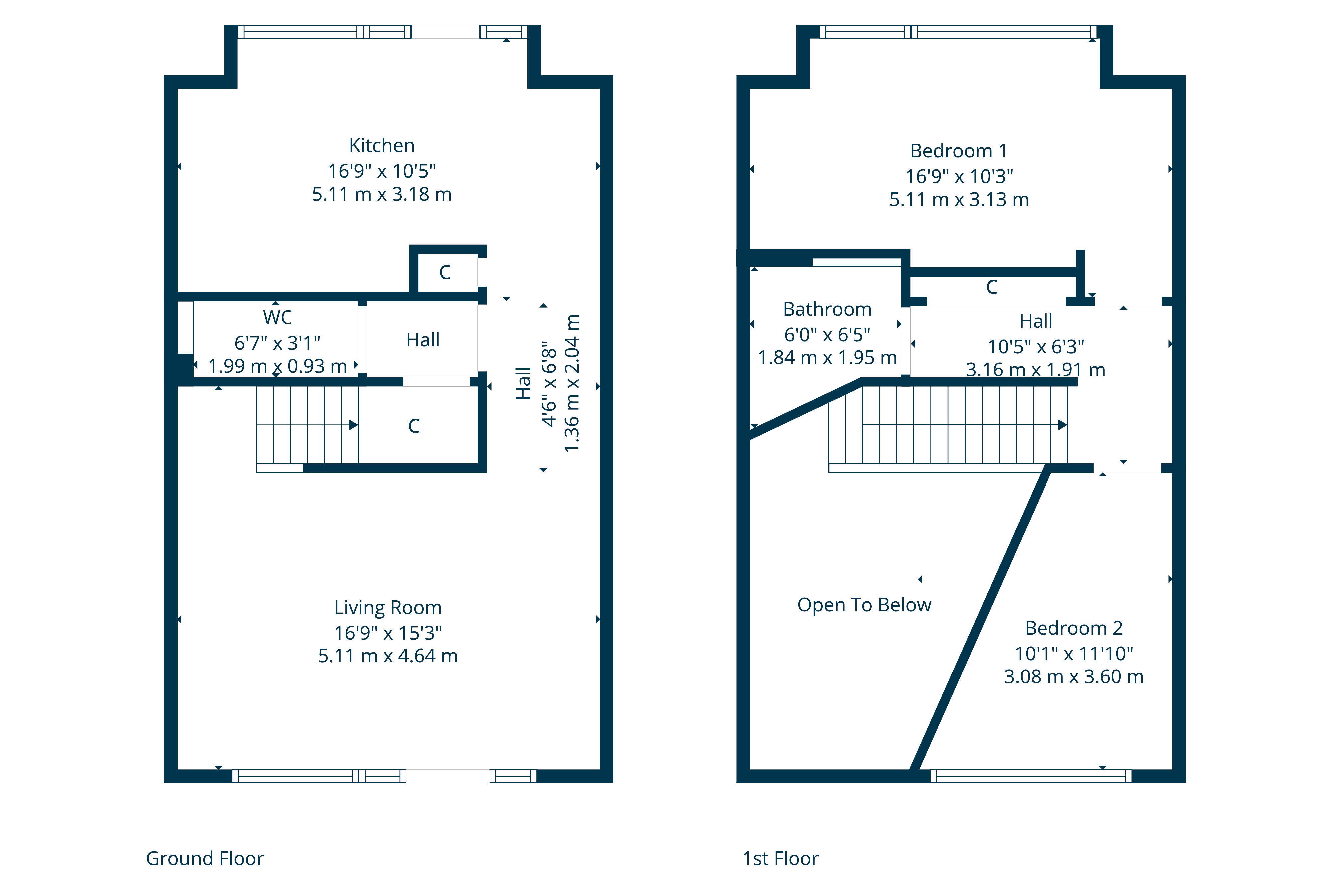 The property is formed over two levels boasting plenty of space and natural light, and uninterrupted views over The Children’s Wood & North Kelvin Meadow. The property comprises; spacious lounge with double height vaulted ceiling, WC and large kitchen, with floor to ceiling windows that allows direct access to the decked rear patio, perfect for summer entertaining. Upstairs, there are two good sized double bedrooms and a modern family bathroom with over bath shower.