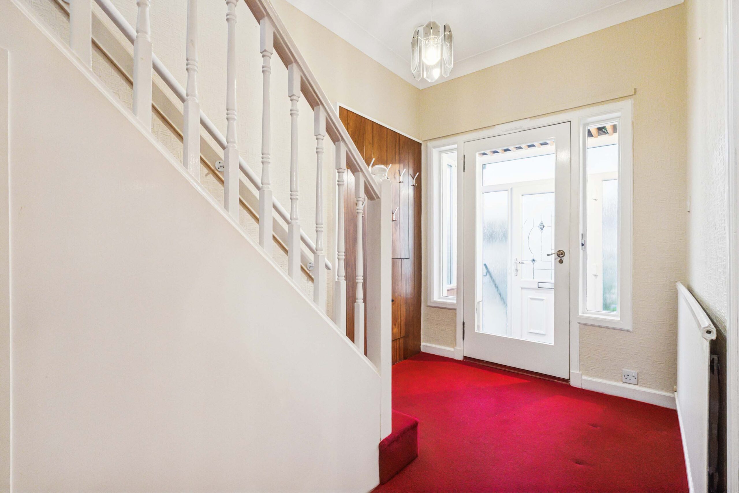 This tremendous home has been impeccably maintained and offers light and bright accommodation, complemented by tasteful décor and quality finishes throughout. A perfect family home, in one of Bearsden’s most admired residential pockets, the accommodation, in full, comprises:- a bright entrance vestibule, leading into an impressive reception hallway, notable for its generous proportions and excellent under-stair storage. The formal lounge is well appointed, with a large bay window, flooding the room with natural light, and a feature living-flame gas fire, providing a focal point. To the rear, the versatile dining/family room enjoys another expansive bay window, overlooking the gardens, while the contemporary galley-style kitchen boasts a range of base and wall mounted units, space for appliances, gas hob and access directly out to the private rear garden, creating an easy flow between indoor and outdoor spaces.