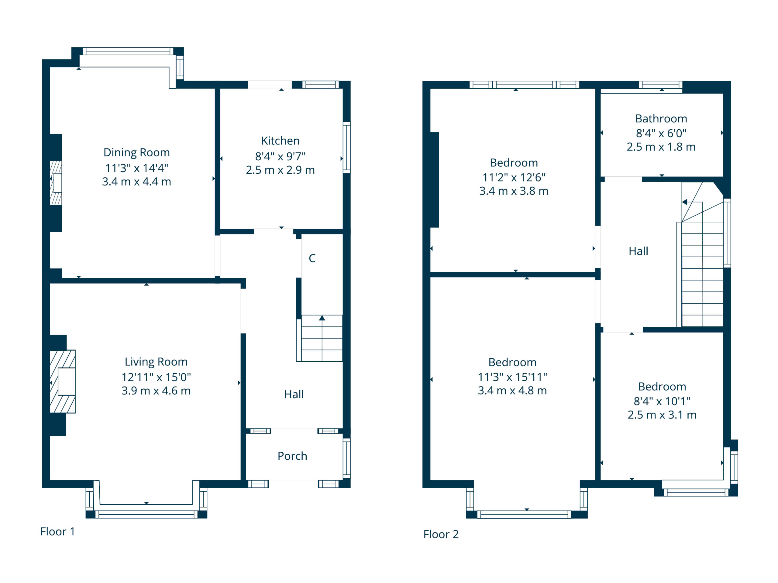 A staircase, with a large window, ascends to a bright upper landing, where there is a generous principal bedroom, with ample fitted storage, a second large double bedroom, to the rear, and a further third generous bedroom provide ideal accommodation for family or guests. There is a well appointed shower room, which features a modern shower, WC and sink.
