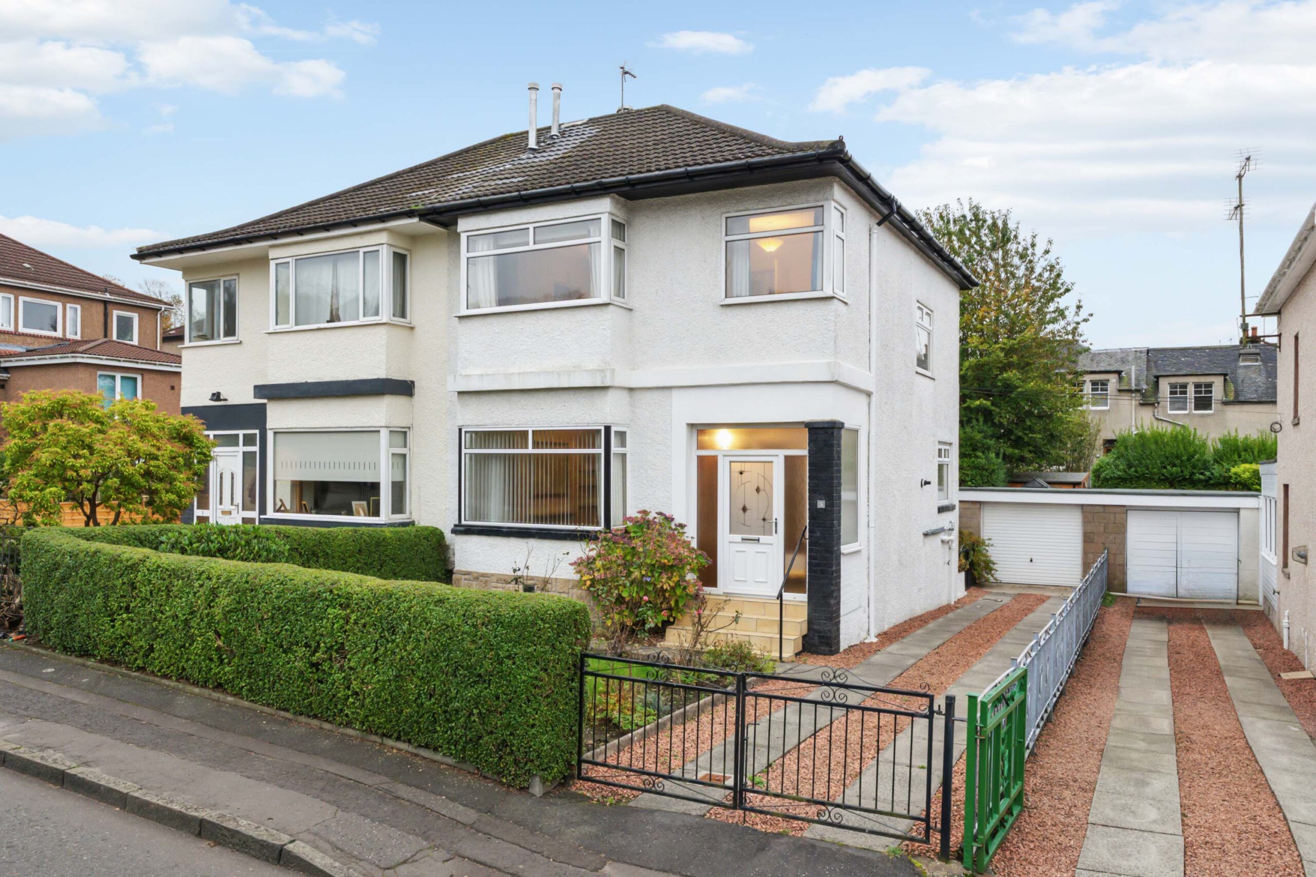 Extremely well presented and impeccably maintained, larger style, three bedroom semi detached villa, with large driveway and detached garage, occupying a peaceful and mature setting within the highly sought after Westerton district of Bearsden.