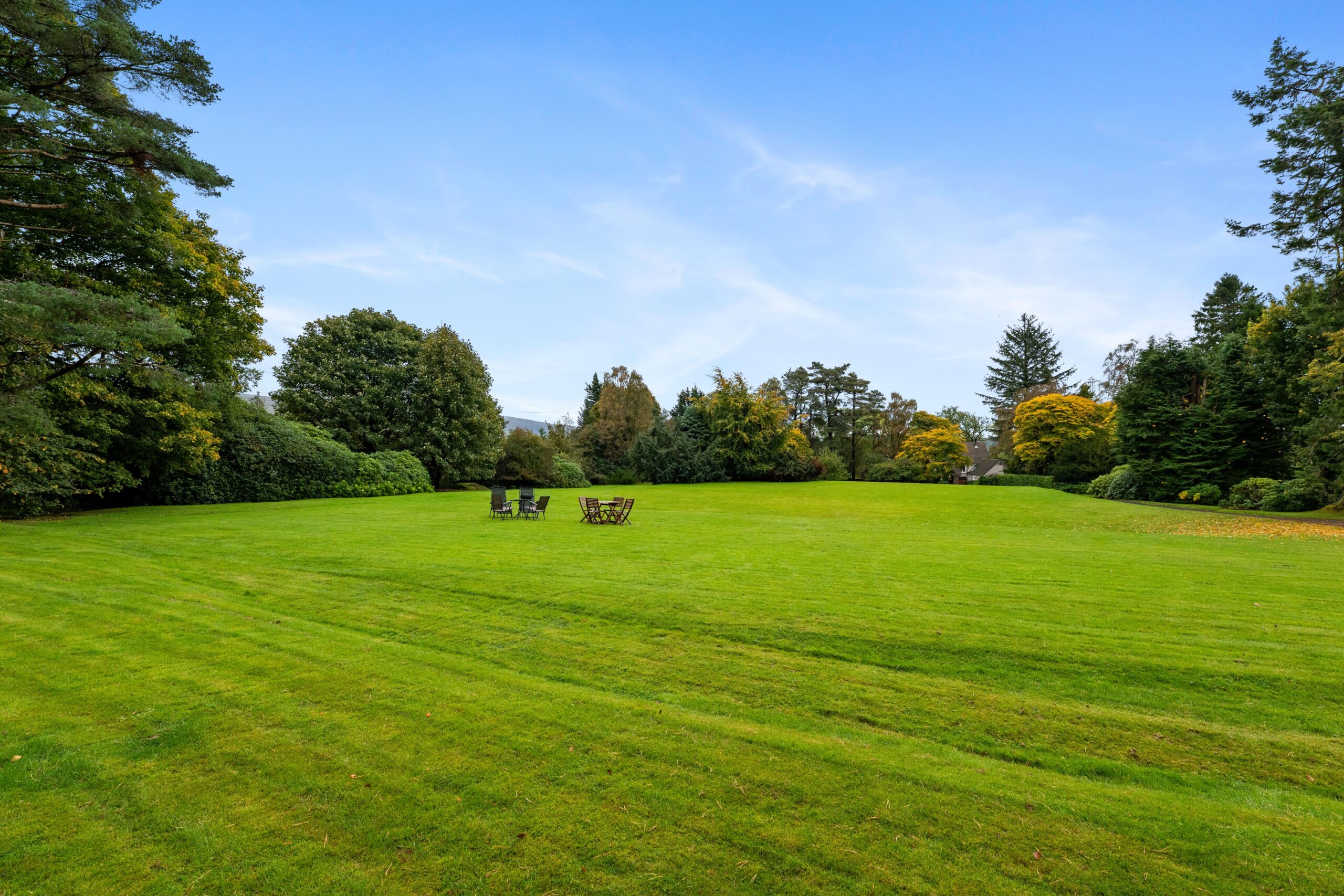 The property is set within approximately six acres of rolling lawns, woodland gardens and a small orchard, offering a sense of tranquillity and space rarely found so close to the city. Despite its idyllic setting within the hamlet of Mugdock, the home is only a few minutes’ drive from Milngavie town centre, where excellent shops, services and rail links to Glasgow and Edinburgh can be found.