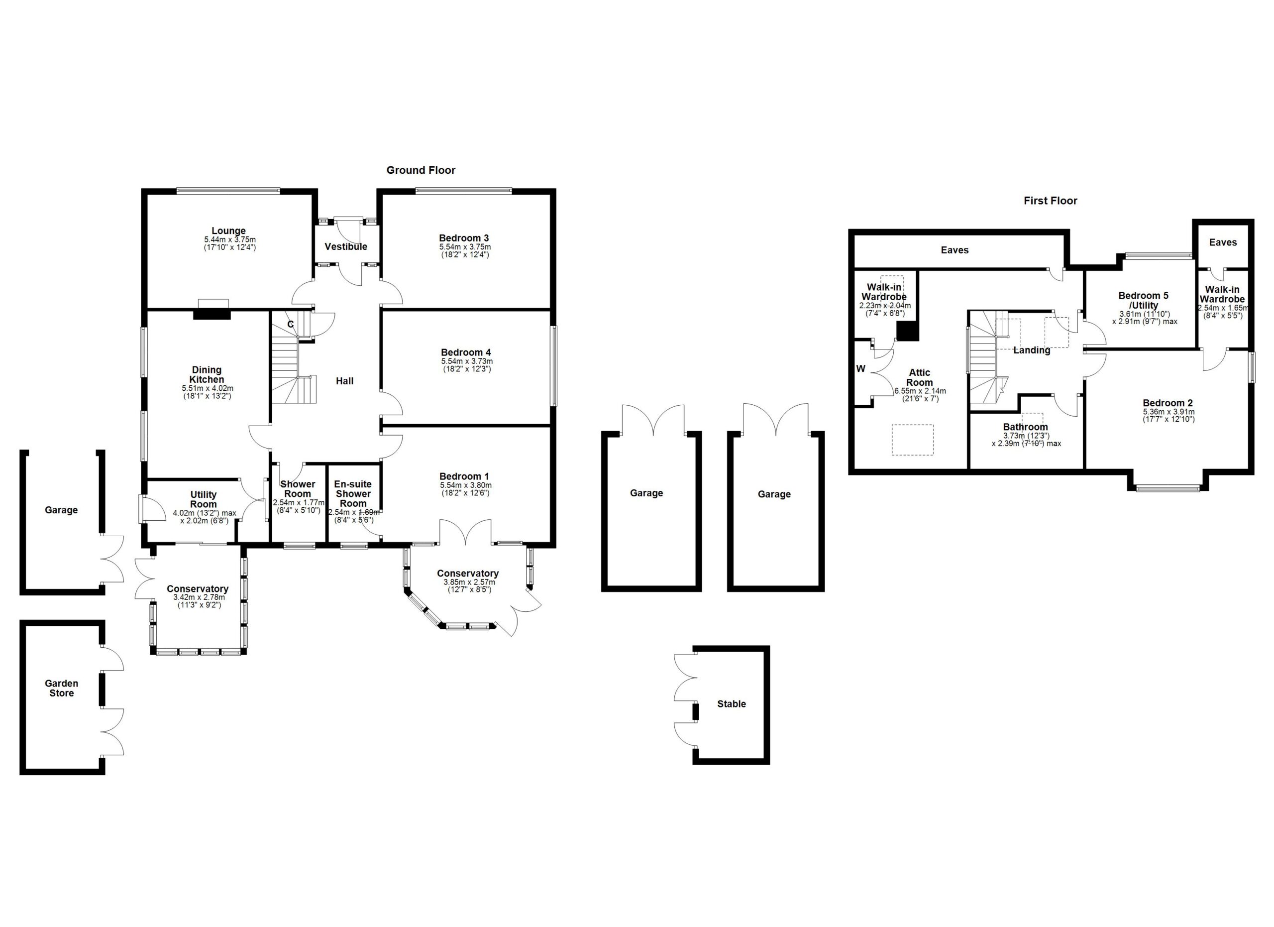 In more detail, the internal accommodation extends to an entrance vestibule leading into a grand reception hallway, with stairs leading to the upper floor and an under stairs cupboard, a spacious lounge to the front with a feature fireplace, two large double bedrooms, a downstairs master bedroom with an en suite shower room and a conservatory, a downstairs shower room, a fitted dining kitchen, a utility room housing the stove that heats the house, and a second conservatory. On the upper floor there is a bright landing, a bathroom suite, a bedroom that is fitted out currently with kitchen units, a double bedroom with a walk-in wardrobe and access through to an attic room, which has also been fitted with a walk-in wardrobe and fitted wardrobes.