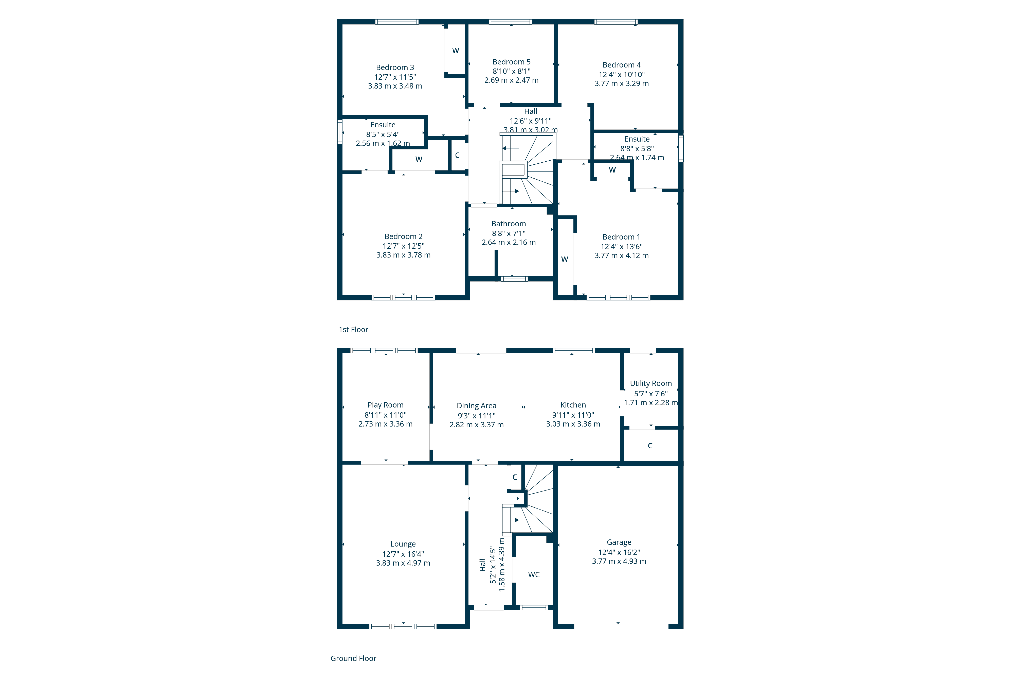 Internally, the property is finished in fresh contemporary tones, with the accommodation comprising: entrance hallway with W.C off, a spacious lounge to the front with glazed French doors leading to a dining room to rear. The kitchen hosts a broad range of units, with upgraded worktops and integrated appliances, ample space for dining table and chairs and a walk-in pantry style cupboard. There is also a utility room and an abundance of storage throughout the home. The upper level hosts five well-proportioned bedrooms, two en-suite bathrooms, and a main family bathroom with white three piece suite and separate shower enclosure