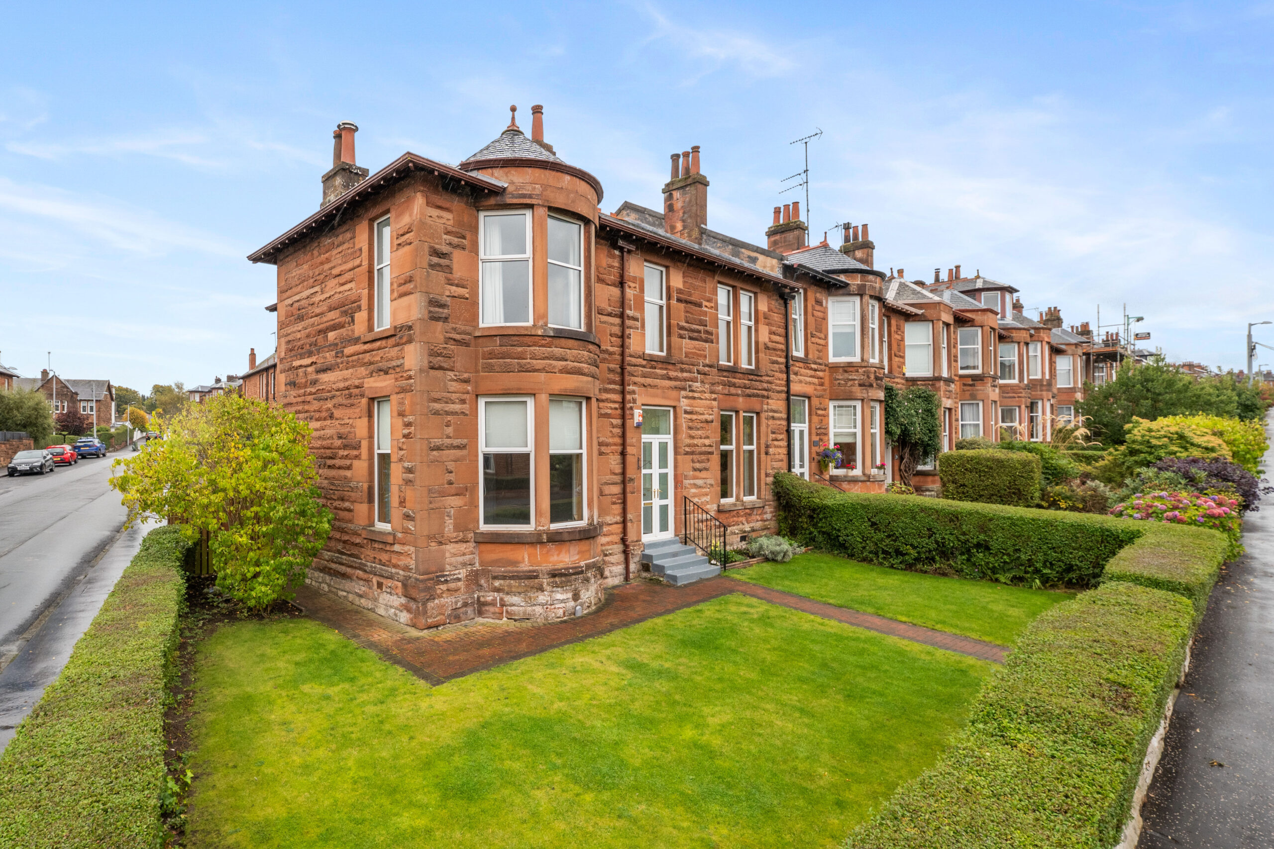 A beautifully proportioned red sandstone end terrace villa set on a peaceful corner plot in the heart of Netherlee.
