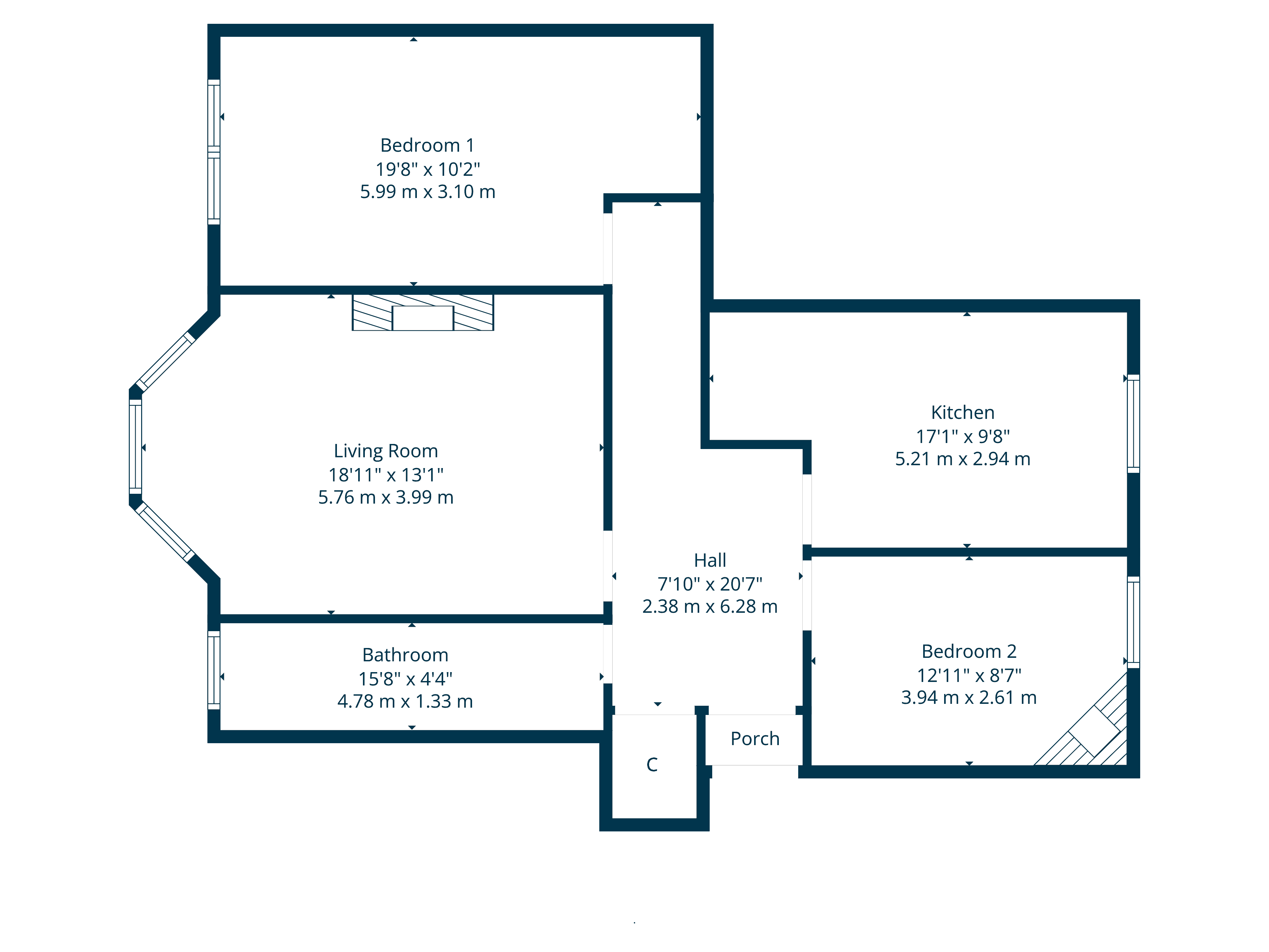 The accommodation includes: resident’s stairwell to second floor, private vestibule through storm doors, broad reception hallway, bay windowed lounge with gas fireplace and two generous double sized bedrooms. A fitted dining kitchen provides integrated appliances and a terrific centre island with stool seating. A contemporary shower room, recently upgraded by our clients, completes the accommodation.