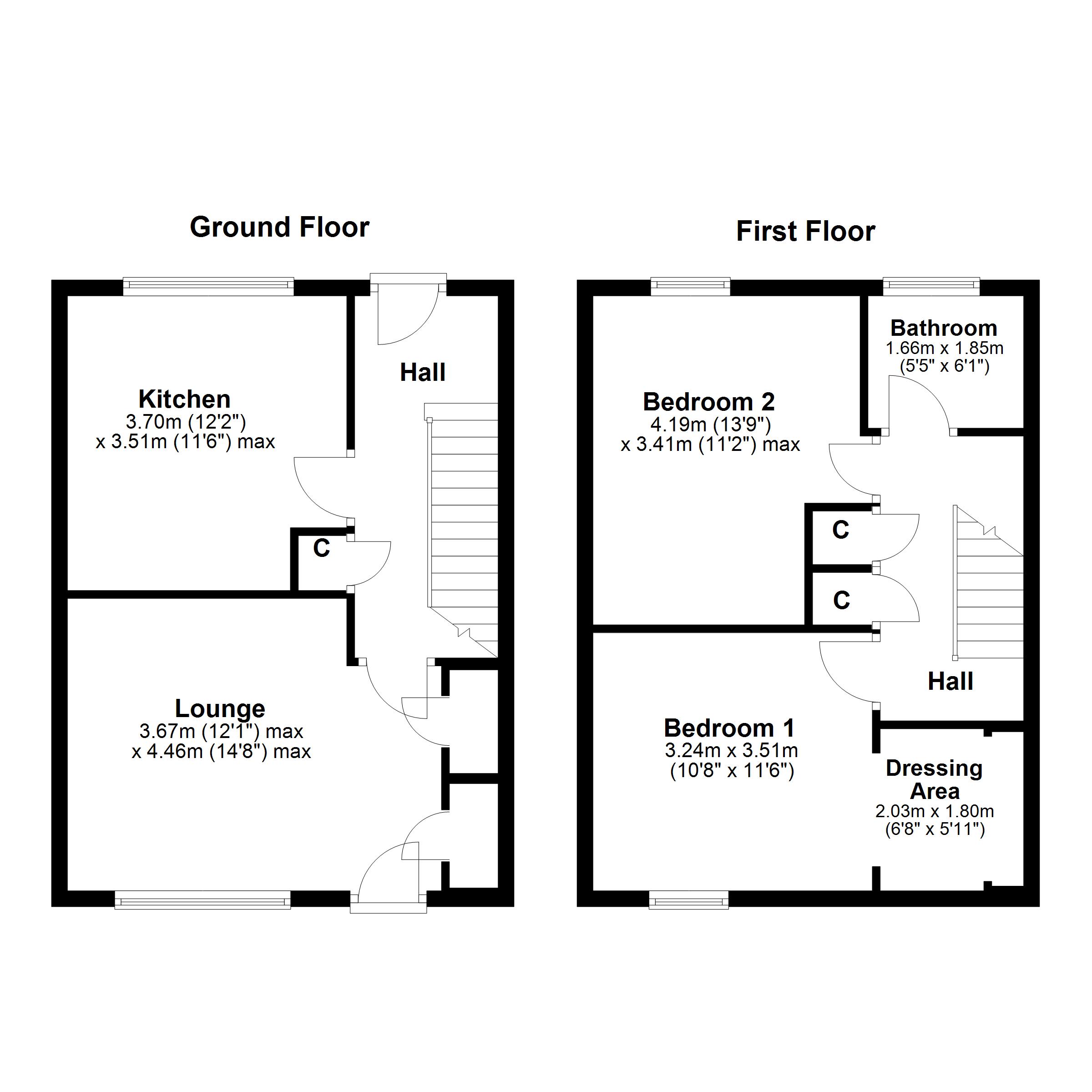 On the upper floor the hall has two store cupboards and entry to both bedrooms and the modern bathroom with a wc, wash basin and bath with shower. The principal bedroom feature a walk in dressing room with fitted wardrobes. The second bedroom is also a double sized room.