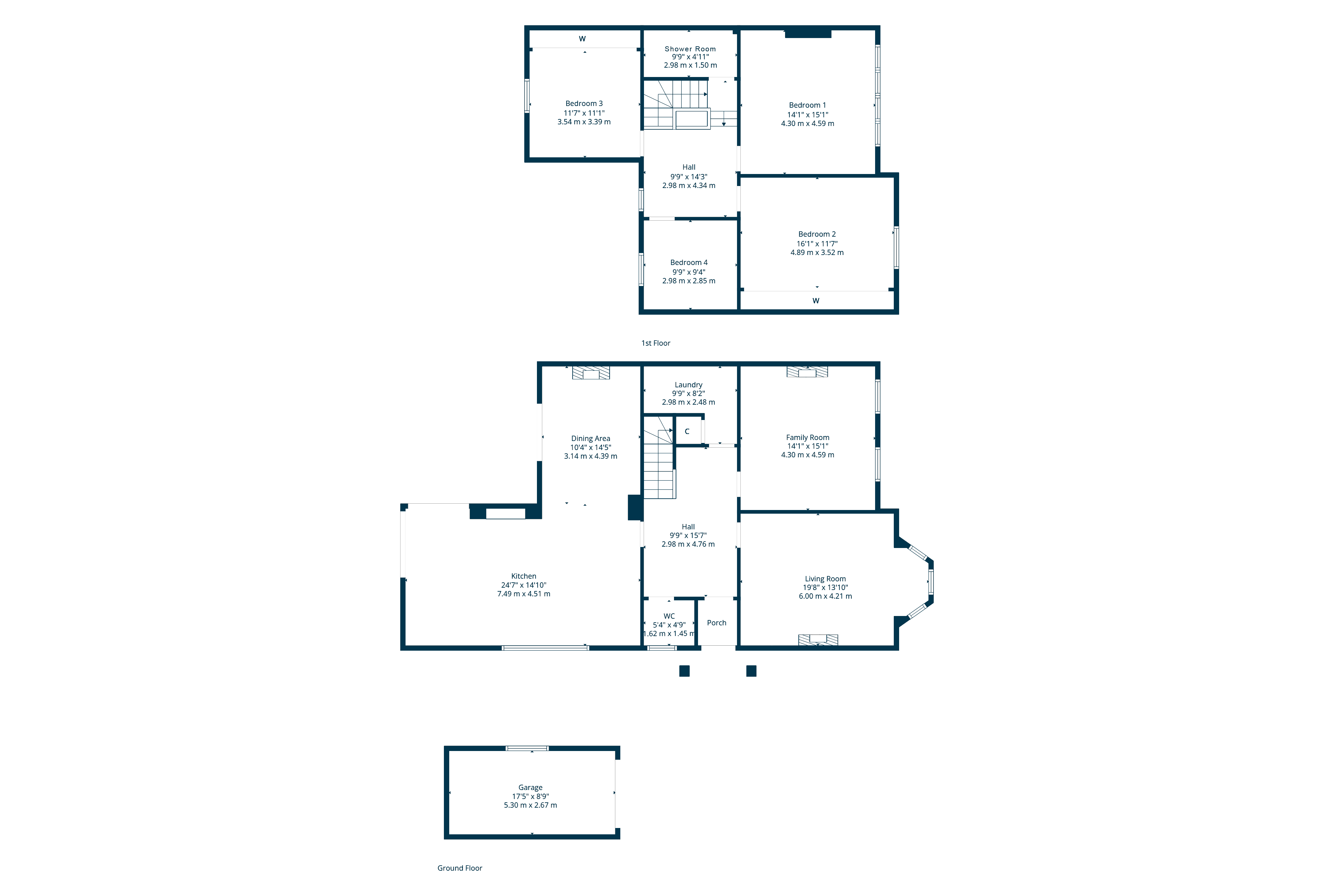 A beautiful staircase with a feature crafted balustrade leads to first floor level revealing four versatile double bedrooms, two to the front and two to the rear. A three-piece shower room is found at half landing including a large shower enclosure via sliding glazed door.