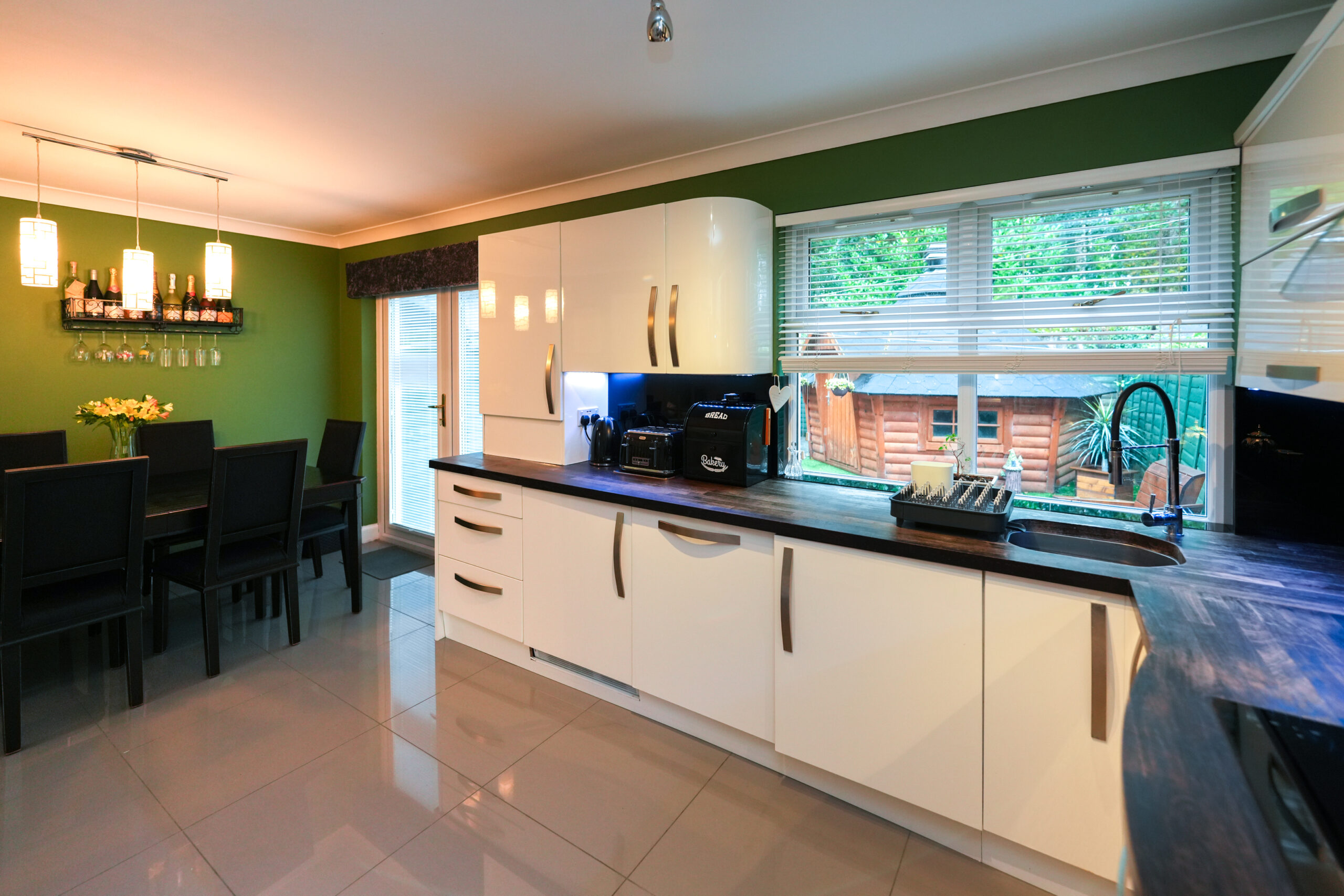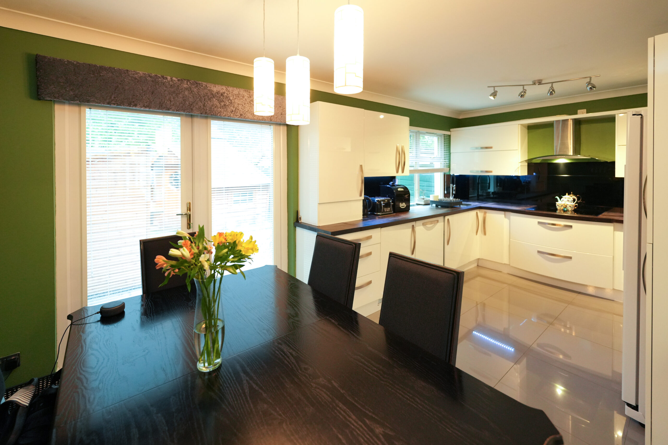 This stunning modern mid terrace villa is located on the outskirts of Kilbirnie in the former grounds of Redheugh House. The property is just a short distance from supermarket shopping and local amenities with the neighbouring village of Glengarnock providing rail travel. There is a fabulous social space in the rear garden which is the Barbecue Hut, great for parties and family events.