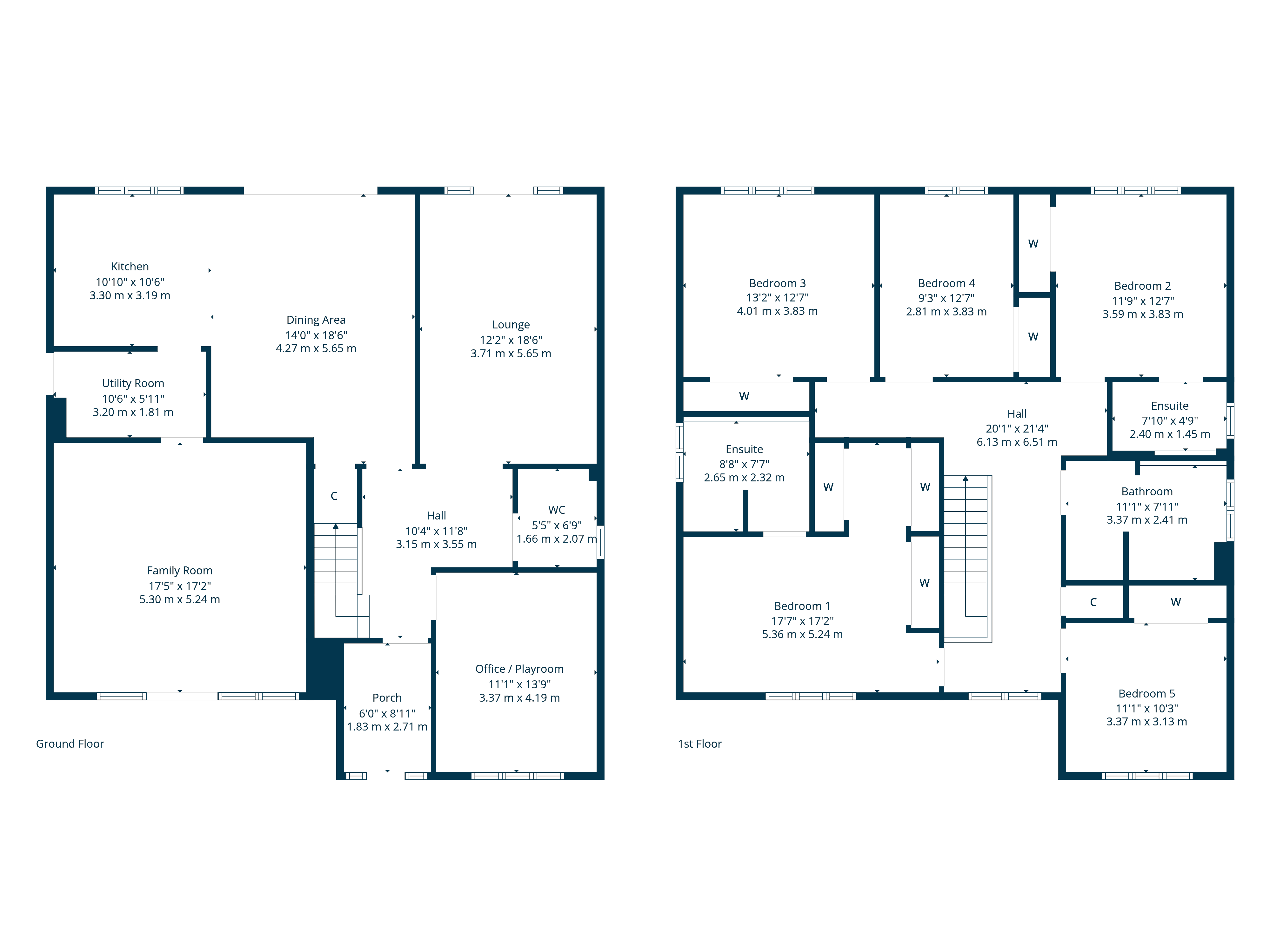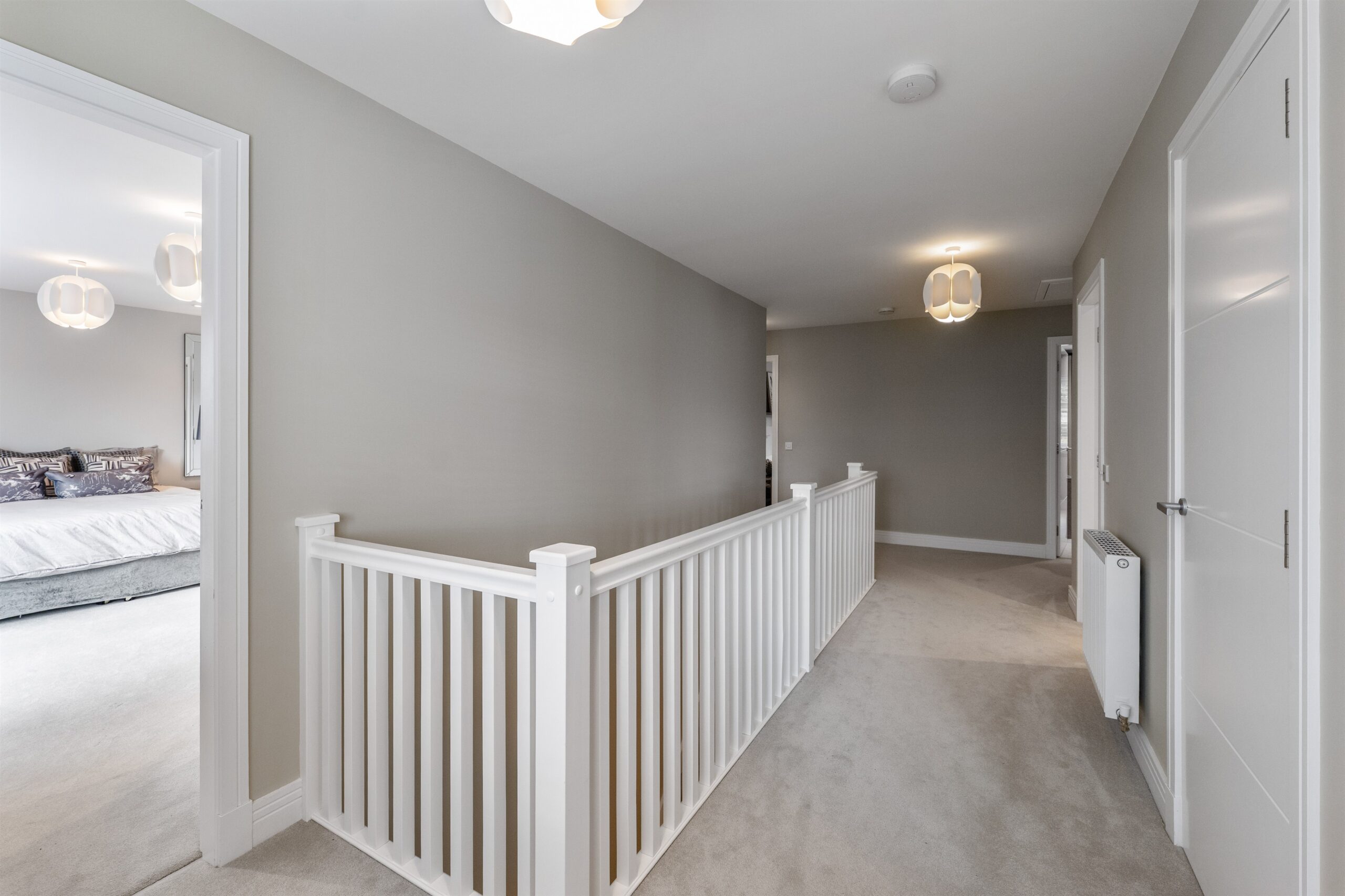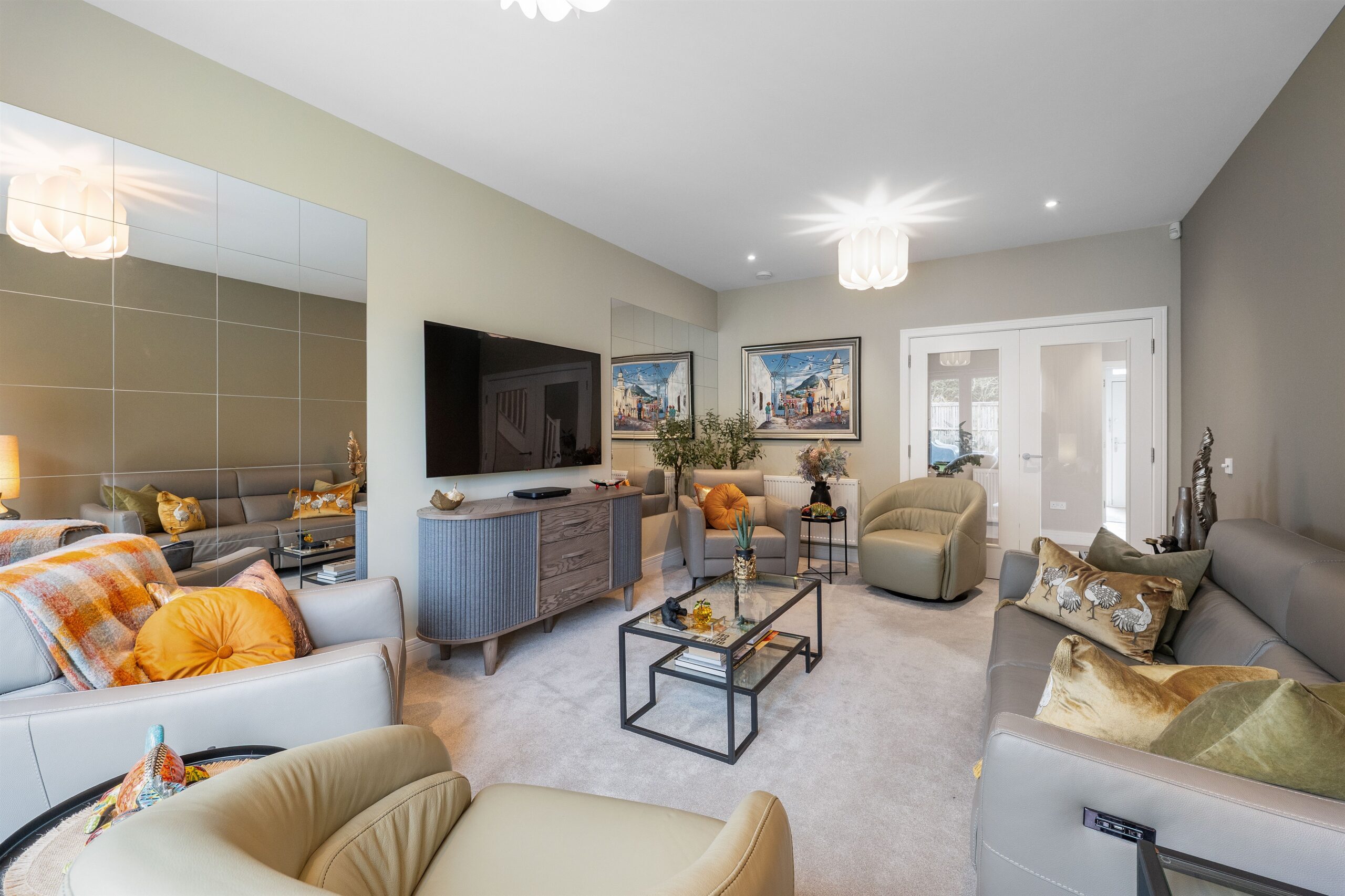 Ground floor accommodation extends to entrance porch, traditional style reception hallway with WC adjacent, generous formal rear facing lounge with access to gardens, fantastic open plan dining kitchen with a range of quality integrated appliances and access to gardens at rear. Separate spacious utility room with access to side leading to wonderful family room with French doors (formerly the double garage). The ground floor is completed by a home office/playroom. Upstairs a bright and spacious landing area gives access to generous principal bedroom with dressing area/fitted wardrobes and en-suite shower room, four further good double bedrooms, all with fitted wardrobes and another with en-suite shower room, and a main family bathroom completes this floor. The specification of the property includes a system of gas central heating, double glazing, Amtico flooring, stylish presentation and interior design throughout.