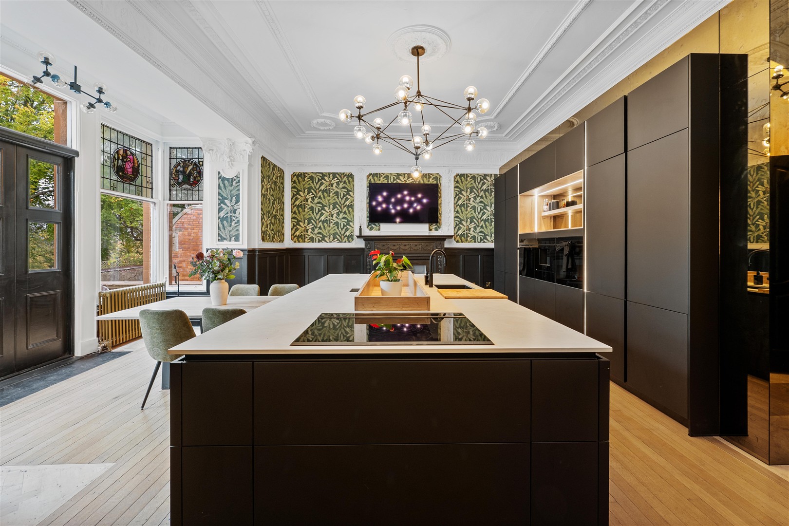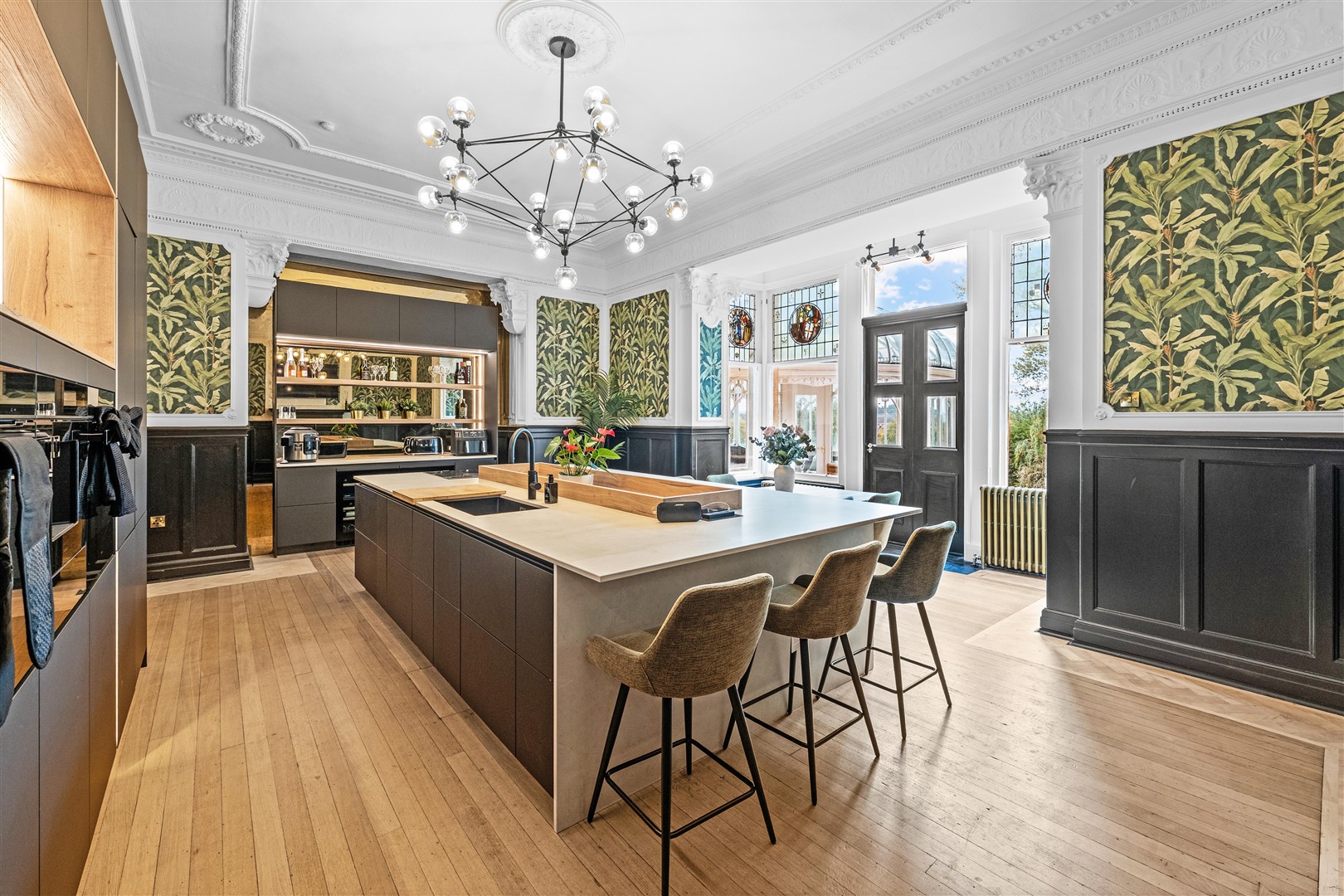The accommodation in brief; vestibule via storm doors, grand reception hallway, bay windowed lounge, bay windowed drawing room, and a bay windowed ballroom with glazed doors opening to the rear garden. A designated gymnasium is accessed from the hallway as well as a wc and a bespoke utility room with shower room/wc. A bay windowed formal dining room is found at the end of the hallway next to a magnificent kitchen opening out to the rear garden. The kitchen is fully integrated including fridges and freezers, two dishwashers, two ovens, an induction hob, a warming drawer, a coffee machine, two wine fridges and an instant boiling water tap. The centre island has a breakfast bar area, and an adjustable table provides further seating provision.