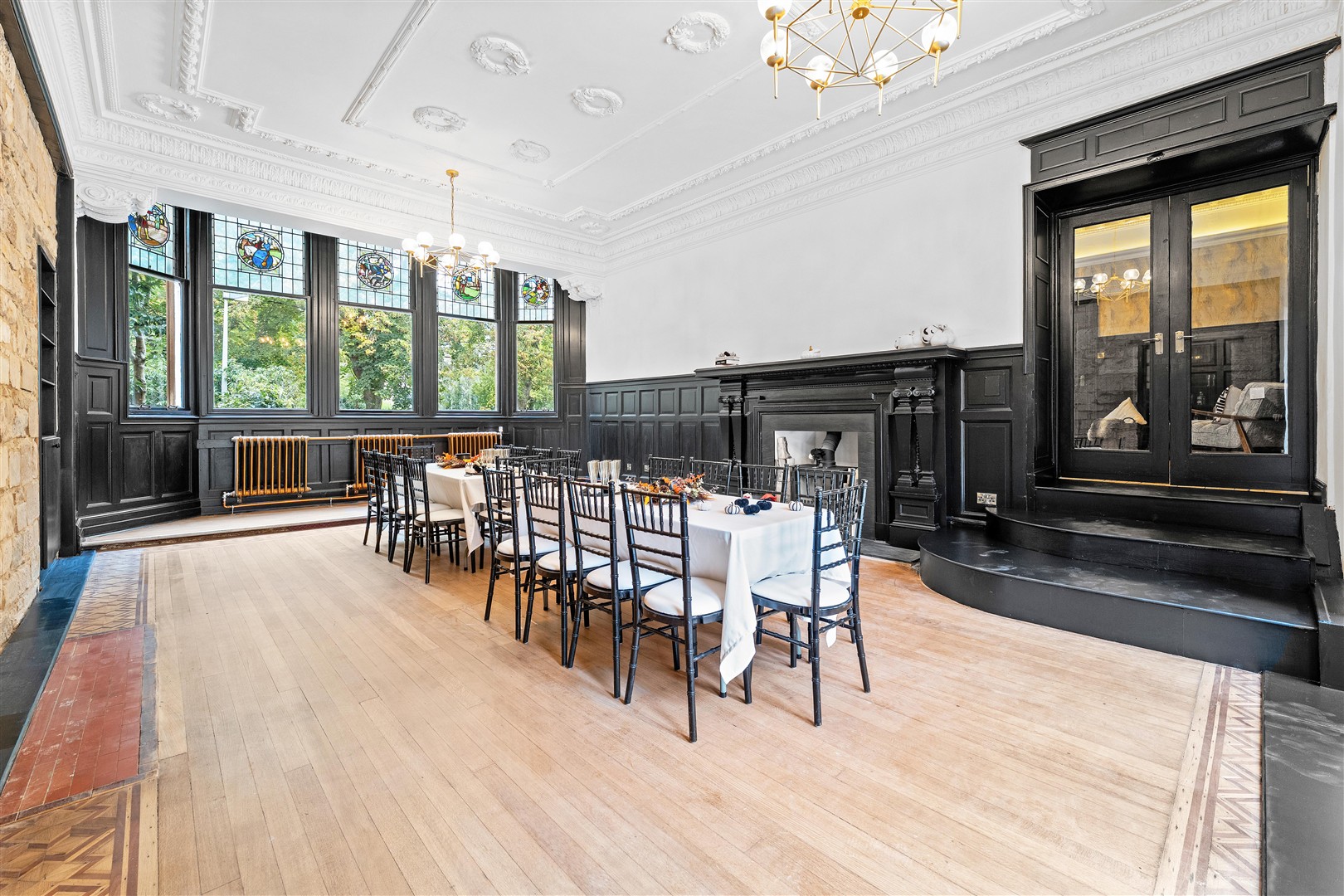 Many sympathetic refurbishments have been carried out to the property; however, the manner of works allow period features to be retained such as detailed ceiling plasterwork, architraves, exposed timber floorboards, fire surrounds, moulded woodwork, and beautiful leaded glass. There are wood burning stoves in the ballroom, the hallway, and the kitchen.