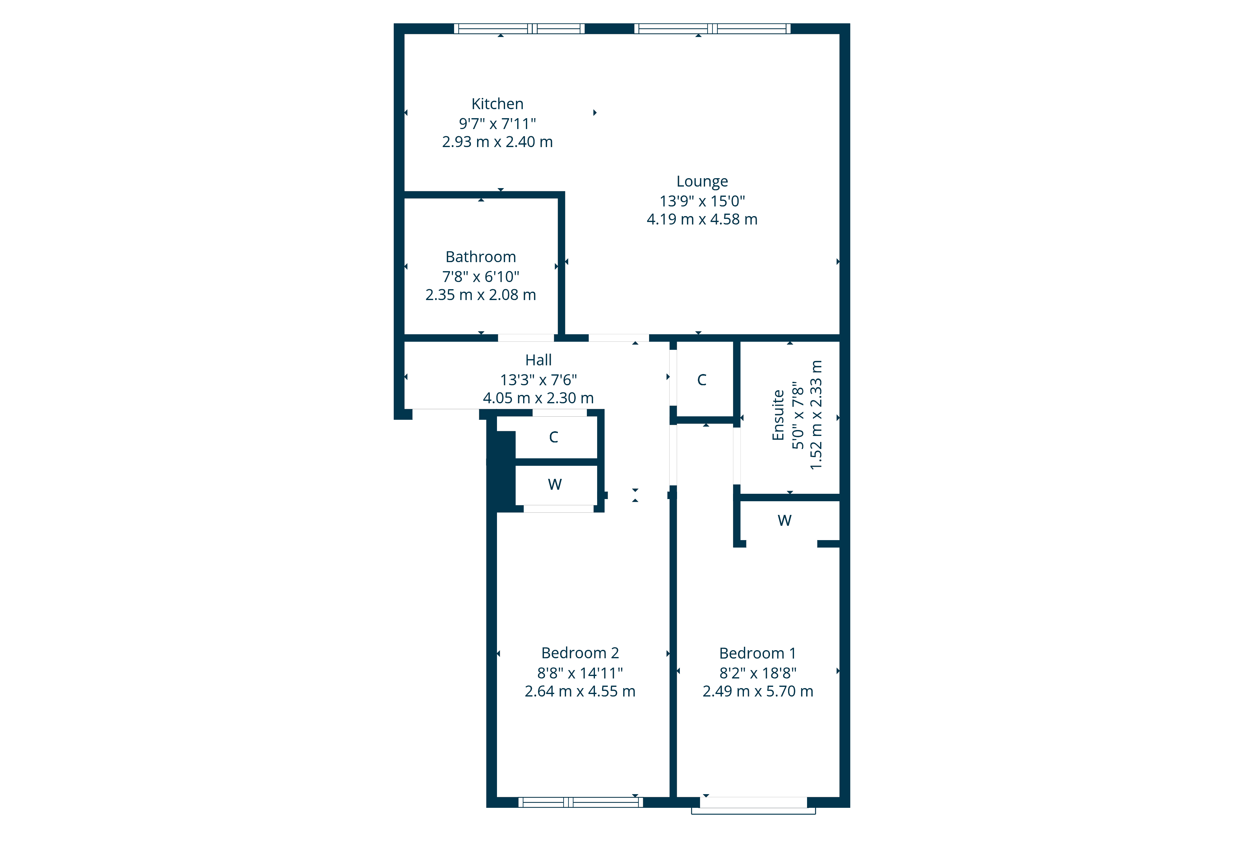 A highly desirable top floor, two bedroom apartment with Juliet balcony close to the Whitecart River.