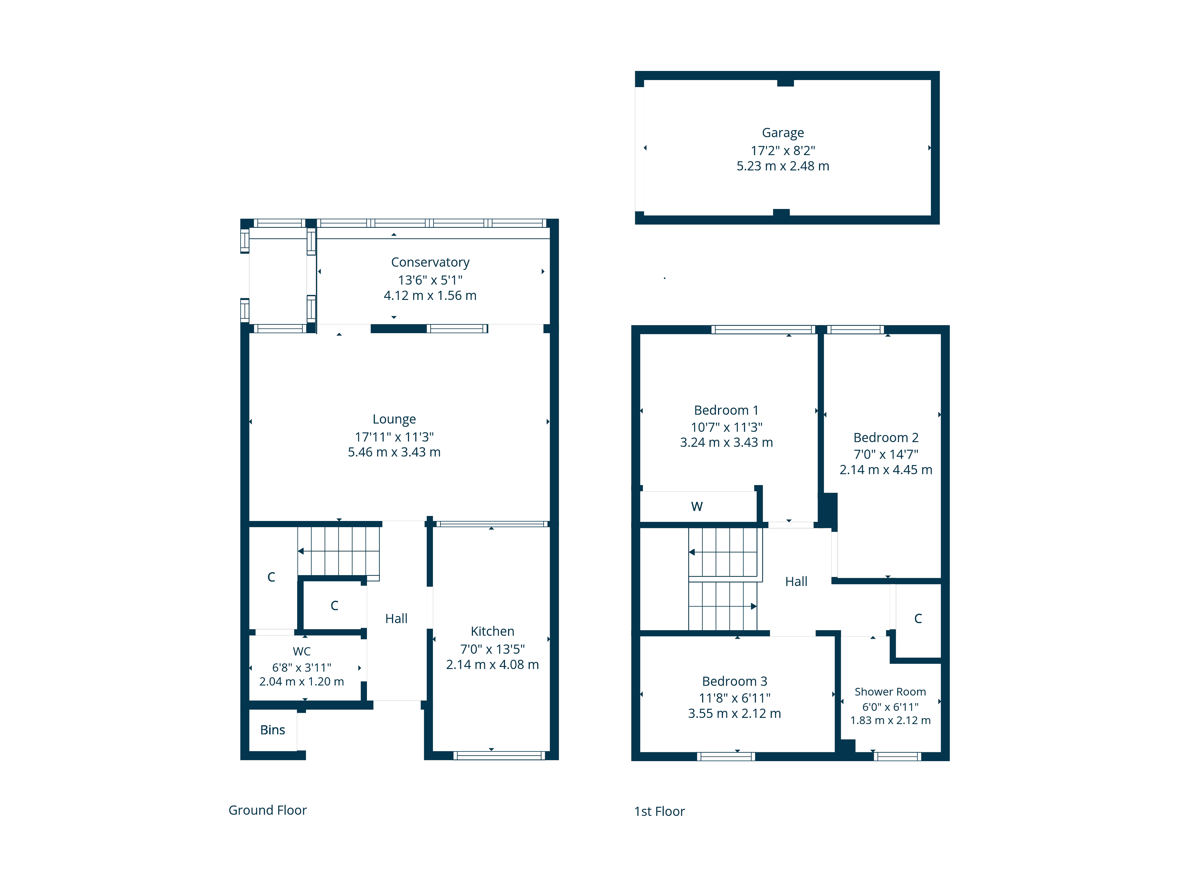 Upstairs, the property offers three bedrooms, including two well-proportioned doubles and a third, smaller room. A tiled three-piece family bathroom, with shower completes the accommodation, while additional storage is available via a cupboard off the upper landing and loft space.